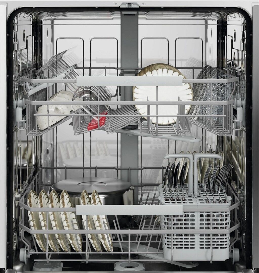 AEG Geschirrspüler der Serie 7000 verfügen über eine hohe Wassereffizienz und effektive Reinigungsleistung bei einem geringen Wasserverbrauch von nur 8,4 Litern dank des neuen Wassersystems. Die flexiblen Körbe mit klappbaren Bereichen sorgen für ein müheloses Beladen.