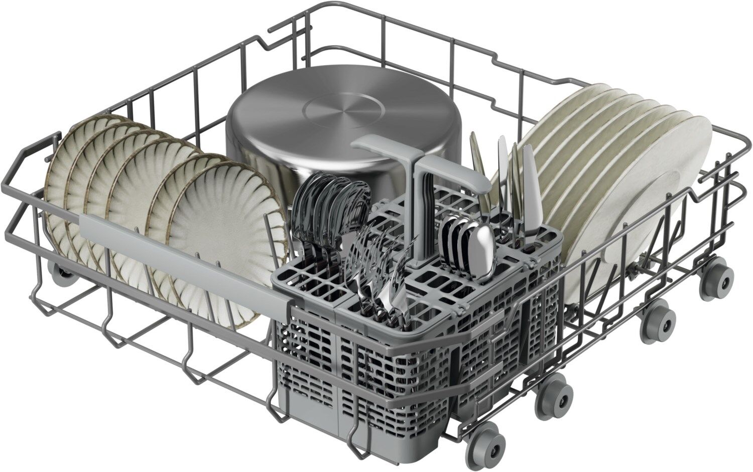 - Einfach zu beladene EasyFlex Körbe mit teilbarem Besteckkorb