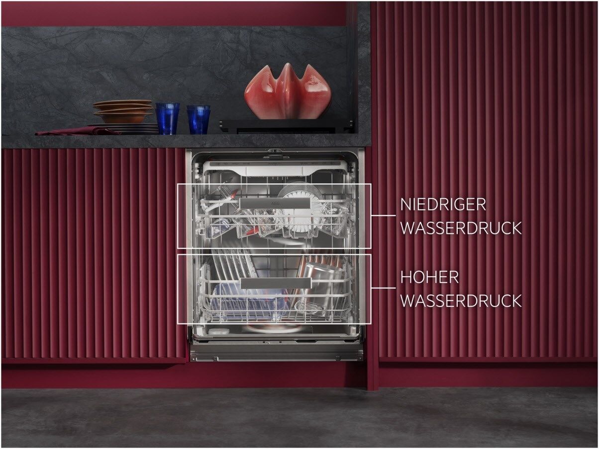 AEG Geschirrspüler der Serie 9000 sind mit multifunktionalen, leichtläufigen Körben und Besteckschubladen sowie speziellen Halterungen für Gläser und Backbleche ausgestattet. Das hocheffiziente Wassersystem entfernt hartnäckige Speiserückstände bei einem geringen Wasserverbrauch von nur 8.4 Litern.