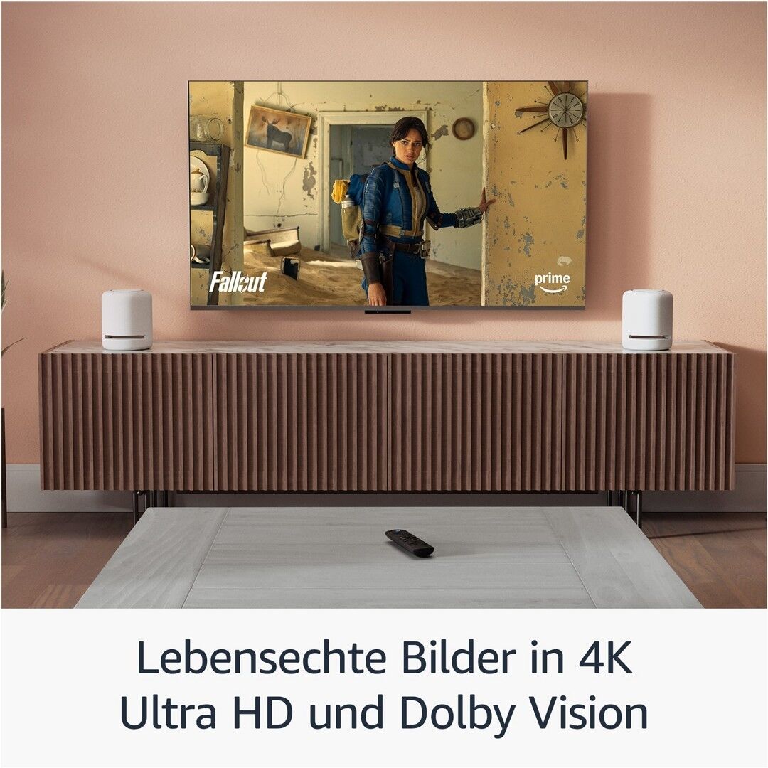 Egal ob Sportereignisse oder Filmpremieren, mit Unterstützung für 4K Ultra HD in Kinoqualität hast du das Gefühl, direkt vor Ort mit dabei zu sein. Erlebe lebendige Farben und hervorragende Helligkeit, mit Unterstützung für Dolby Vision und HDR10+, immersiven Klang mit Dolby Atmos, und ruckelfreies Streaming mit Wi-Fi 6. Füge kompatible Echo-Lautsprecher hinzu, um dein Alexa-Heimkino zu komplettieren.
