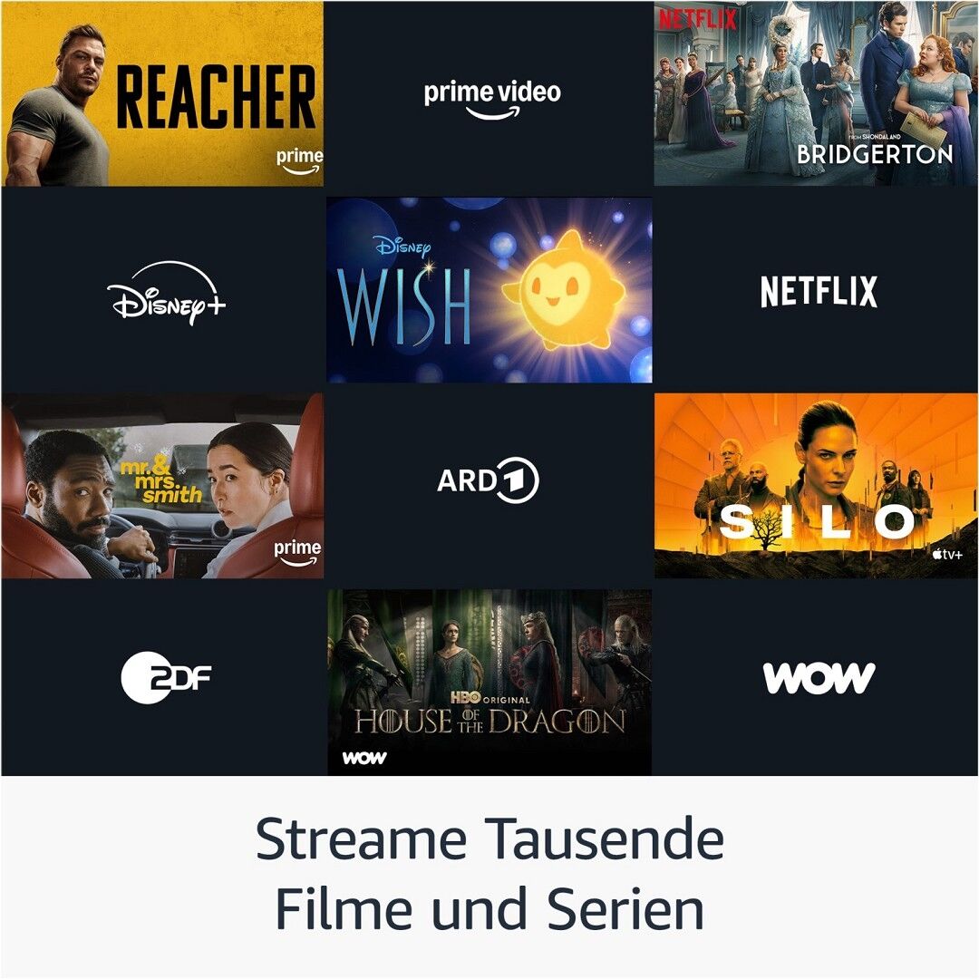 - Grenzenlose Unterhaltung – Streame Tausende Filme und Serien. Du kannst deine Lieblingsinhalte von Netflix, Prime Video, Disney+ und vielen mehr abspielen. Möglicherweise fallen Abonnementgebühren an.
