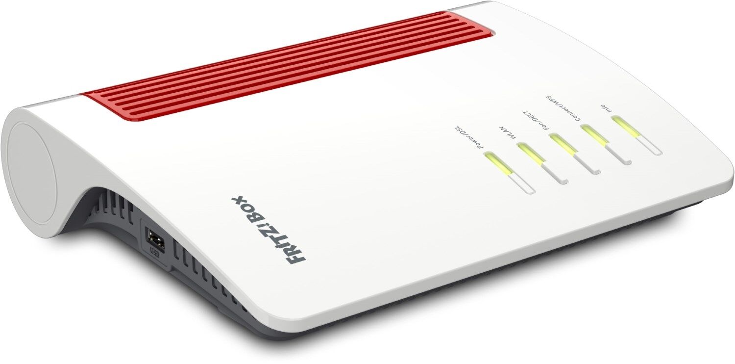 - 1x 2,5 Gigabit Ethernet WAN/LAN, 1x 2,5 Gigabit Ethernet LAN, 2x Gigabit Ethernet LAN, 1x USB 2.0 für Drucker und Speicher im Netz, 2x analoger Telefonanschluss