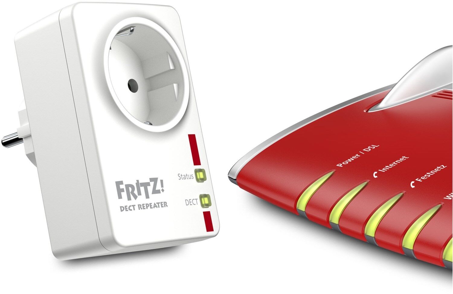 - Gleichbleibende Sprachqualität im gesamten DECT-Funknetz mit automatischer Gesprächsübergabe von FRITZ!Box zum Repeater