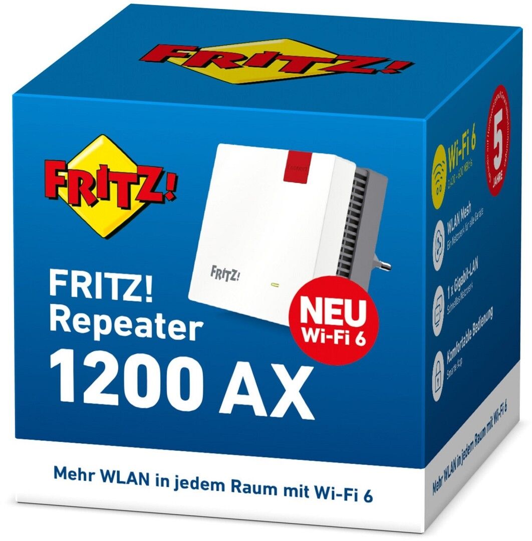 Der FRITZ!Repeater 1200 AX verbindet sich mit dem WLAN Ihrer FRITZ!Box und stellt ein eigenes Netz bereit: So erhalten Sie mehr WLAN-Reichweite, ganz ohne Kabel. Mit seinem Gigabit-LAN-Anschluss integriert der Repeater netzwerkfähige Geräte ohne WLAN ins Heimnetz, zum Beispiel einen Smart-TV oder Drucker.