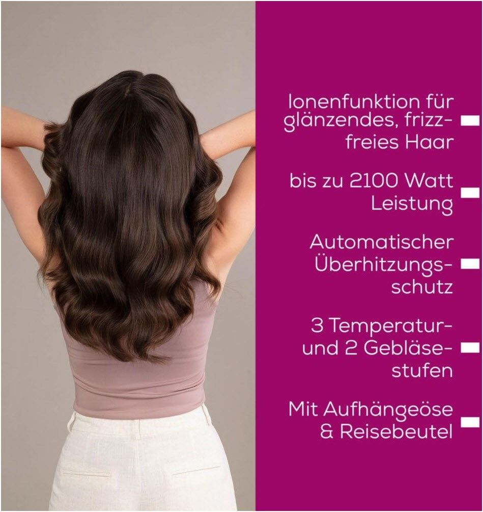 - Geschmeidig glänzendes Haar dank integrierter Ionenfunktion
