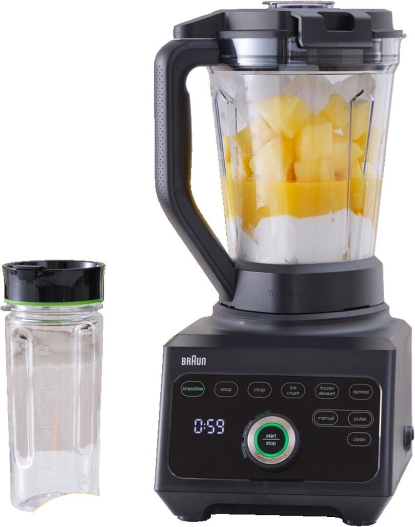 Mixbehälter aus Tritan™: bruchfest, geruchs- und geschmacksbeständig.
