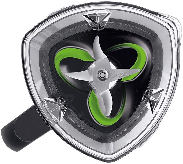 60% feiner und 4x schneller.* Einzigartig konstruierter, dreieckiger Mixbehälter sorgt dafür, dass die Zutaten schneller in den Mixbereich geleitet werden.