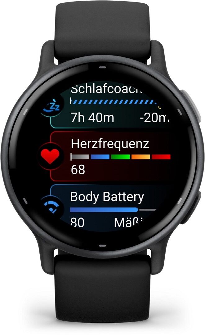 Mit dieser Fitness-Smartwatch erfährst du mehr über deinen Körper als je zuvor – und hast einen Coach für deine individuellen Bedürfnisse immer mit dabei. Innovative Fitness- und Gesundheitsfunktionen ermöglichen eine detaillierte Analyse von Aktivitäten, Schlaf, Stress und mehr. Der tägliche Morning Report zeigt dir die wichtigsten Informationen für den Start in den Tag und wie du deine Fitness gezielt verbessern kannst. Mehr als 30 Sport- und Outdoor-Apps sowie Trainingspläne mit Textanleitung unterstützen dich dabei, aktiv zu bleiben. Umfangreiche smarte Features halten dich immer up-to-date: Erhalte Smart Notifications und Termine, bezahle kontaktlos über Garmin Pay oder genieße deine Lieblings-Playlists – direkt über die Smartwatch. Das alles mit einer überragenden Akkulaufzeit von bis zu 11 Tage im Smartwatch-Modus.