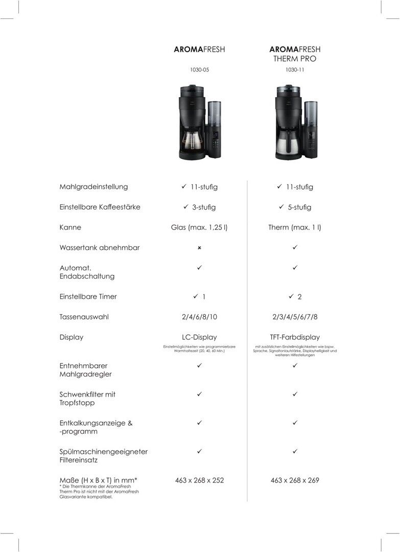 Die Melitta® AromaFresh ist eine Kaffeemaschine mit Mahlwerk aus Keramik. Dieses bietet 11 variable Mahlgradeinstellungen, für eine perfekte Abstimmung von Mahlgrad auf die Kaffeebohnen und die individuellen Kaffeevorlieben.