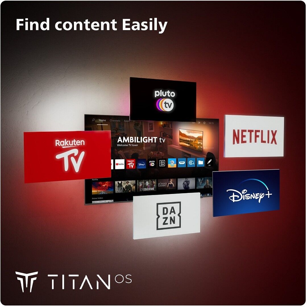 Mit unserer TITAN OS Smart-TV-Plattform finden Sie schnell und einfach was Sie lieben. Gefällt Ihnen eine Serie? Dann können Sie sie direkt auf dem Startbildschirm weiterschauen. Lust auf etwas Neues? Durchsuchen Sie einfach Kategorien wie Action oder Drama oder lassen Sie sich Vorschläge von den wichtigsten Streaming-Diensten anzeigen – alles an einem Ort.