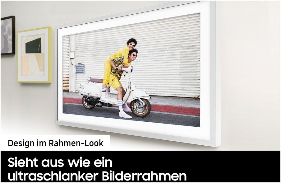 Dank seines Designs im Rahmen-Look sieht der Samsung The Frame Lifestyle Fernseher wie ein ultraschlanker Bilderrahmen aus, der fast lückenlos an deiner Wand hängt und so deine Inneneinrichtung ergänzt. Du kannst den Samsung The Frame 2023 TV auch mit separat erhältlichen austauschbaren Rahmen ganz einfach an deinen individuellen Stil anpassen.