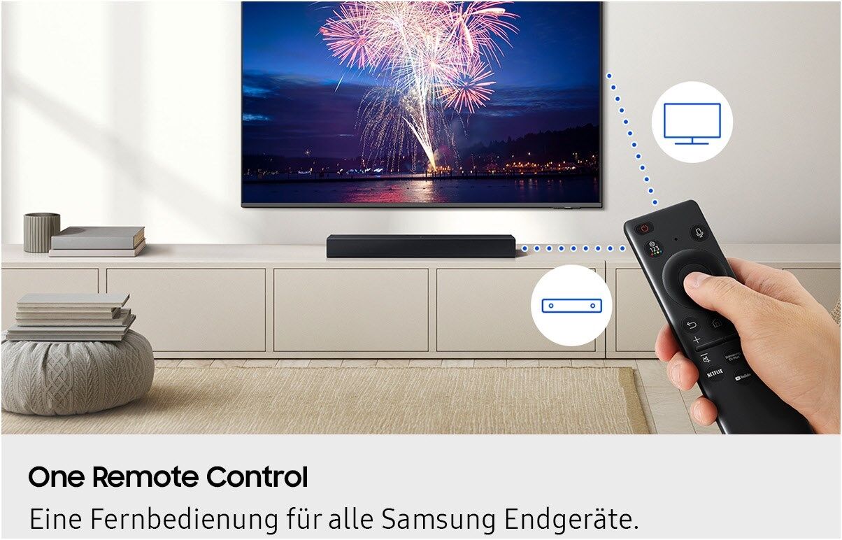 Mit deiner Samsung TV-Fernbedienung kannst du nicht nur den Fernseher steuern, sondern auch wichtige Soundbar-Funktionen wie Power, Lautstärke und Soundeffekte regeln.
