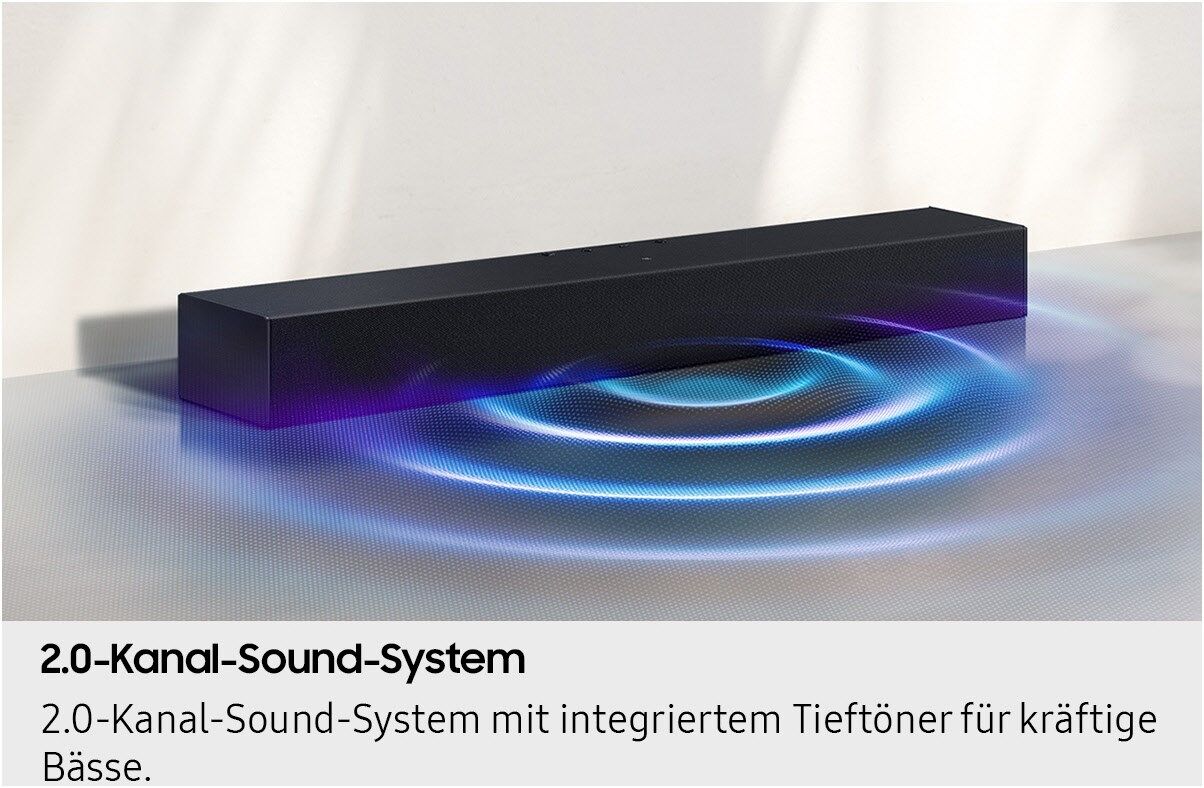 - Vollständiges 2.0-Kanal-Sound-System mit integriertem Tieftöner für druckvolle Bässe