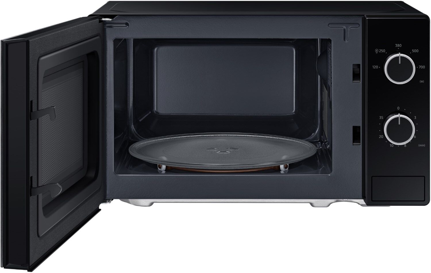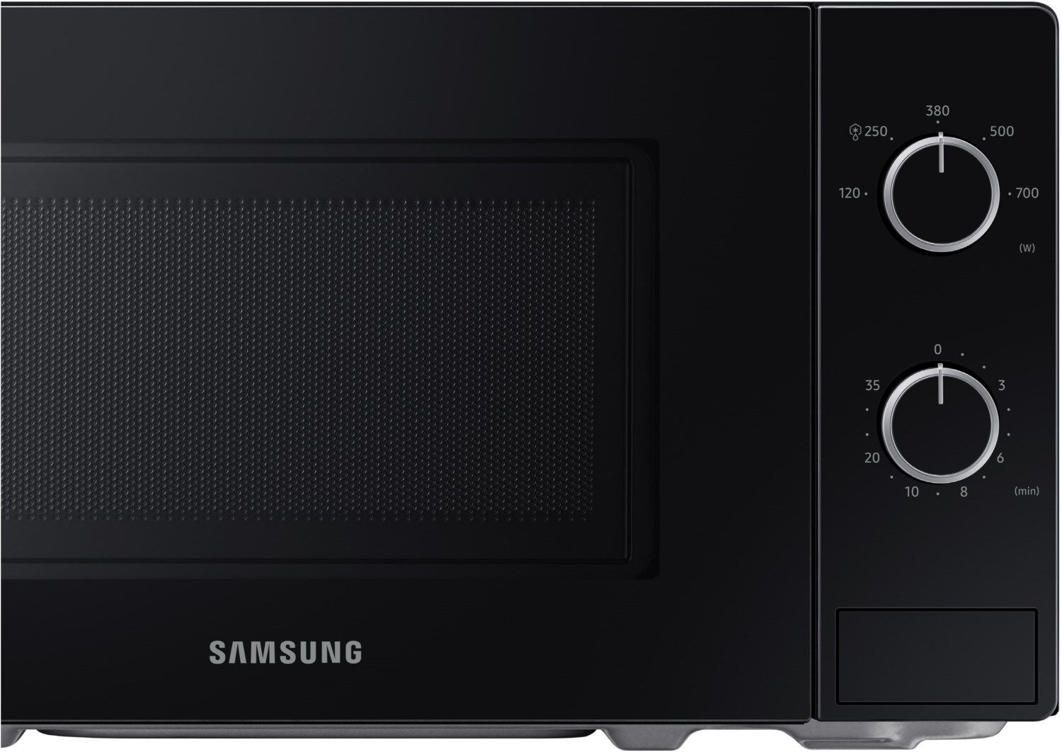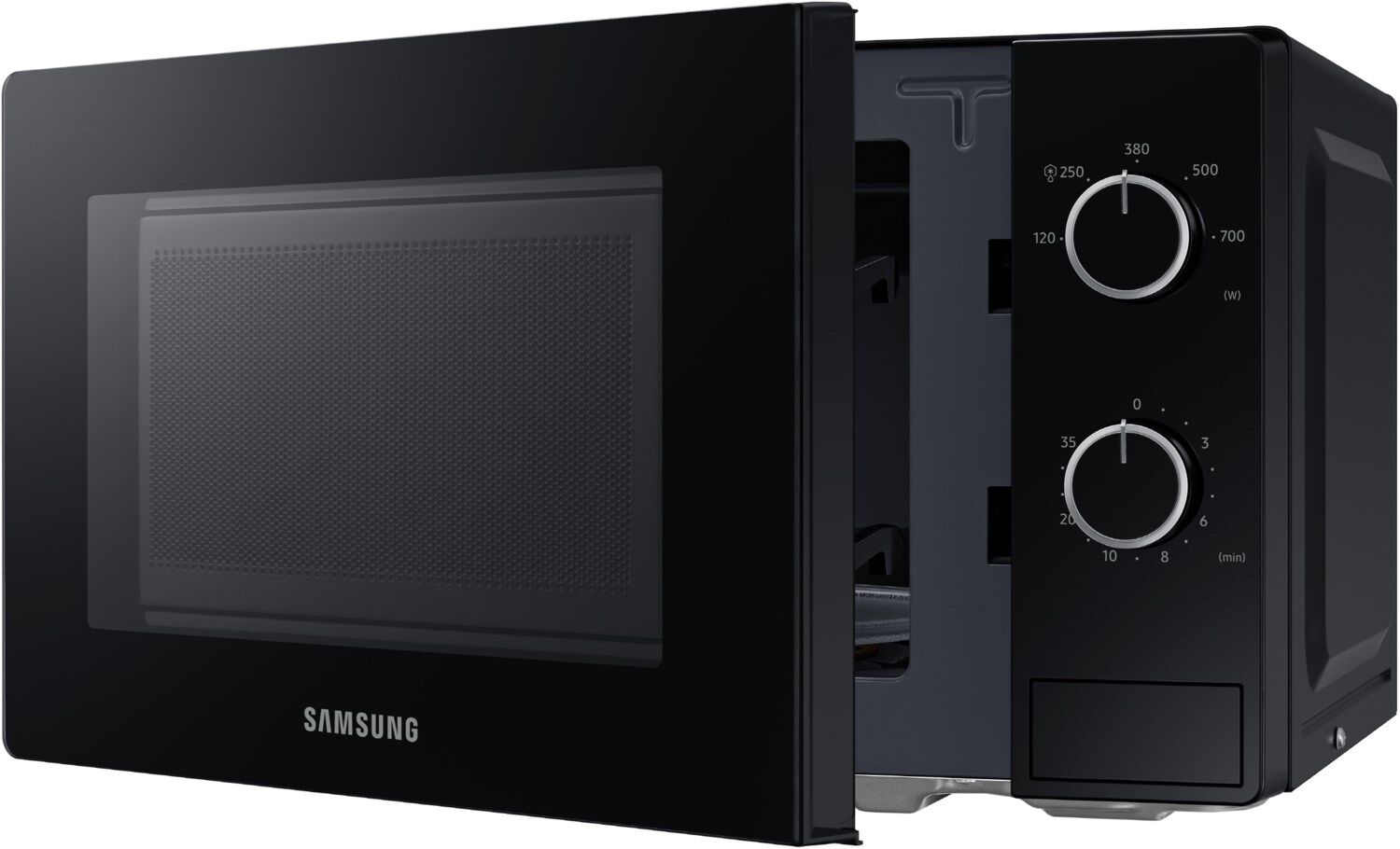 Die beiden Bedienknebel der Mikrowelle haben einen Metallrand, wodurch sie elegant und gleichzietig stilvoll aussehen. Mit ihrer matten Oberfläche sind sie sowohl optisch als auch in der Handhabung ein echter Hingucker.