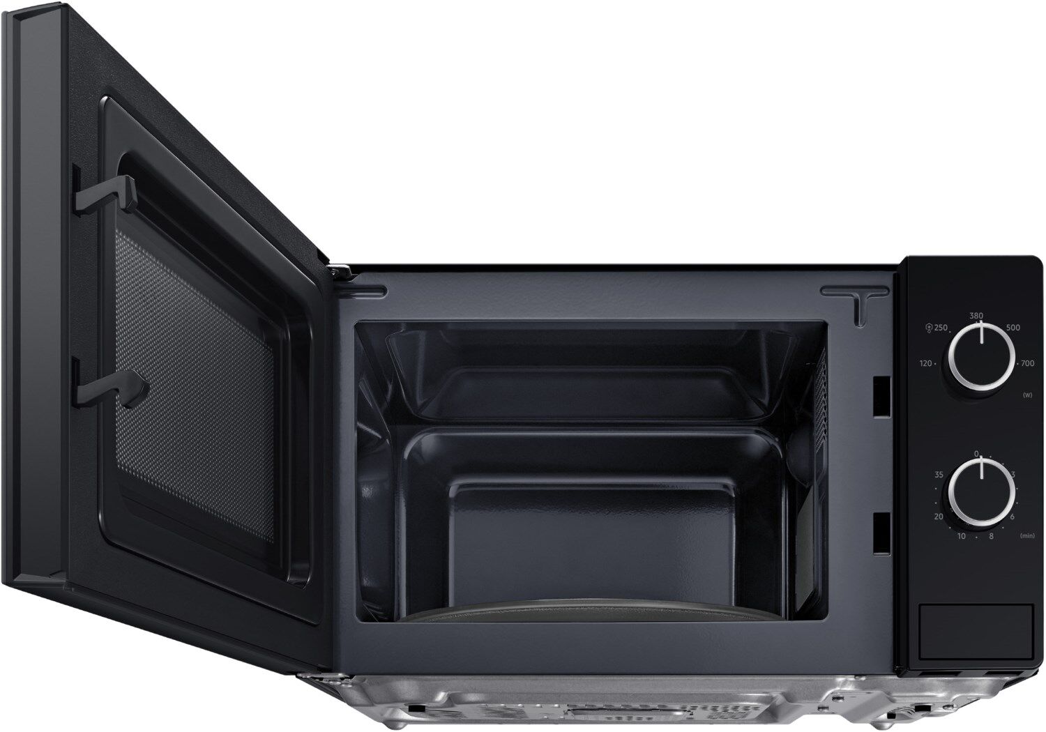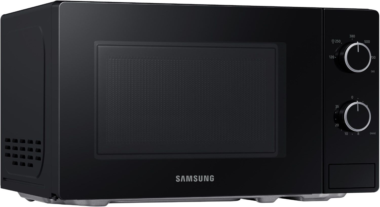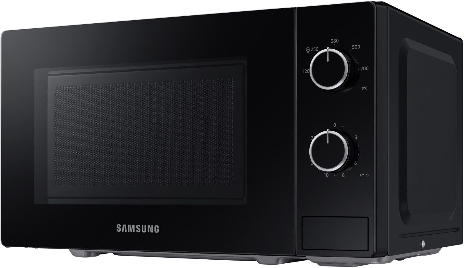 Die beiden Bedienknebel der Mikrowelle haben einen Metallrand, wodurch sie elegant und gleichzietig stilvoll aussehen. Mit ihrer matten Oberfläche sind sie sowohl optisch als auch in der Handhabung ein echter Hingucker.