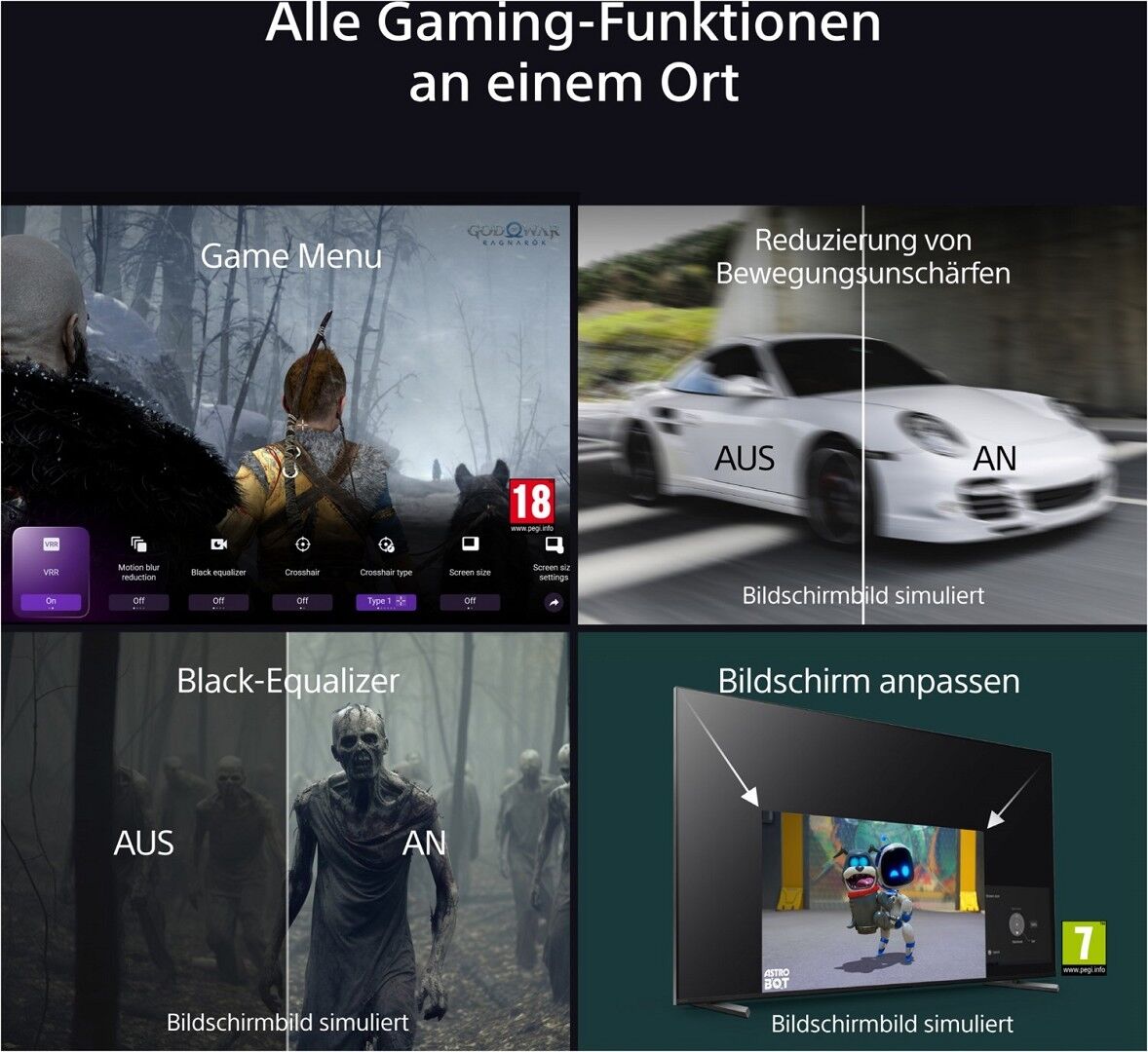 Für Gamer bietet unser Game Menu 2 alles, was man zum Gewinnen braucht, an einem Ort (7). 4K/120fps, VRR und ALLM gehören zu den Merkmalen von HDMI 2.1. (8), und wenn Sie noch mehr wollen, können Sie in Verbindung mit einer PlayStation 5 zusätzliche Gaming-Funktionen nutzen (9). Mit PS Remote Play können Sie sogar aus der Ferne spielen (10).