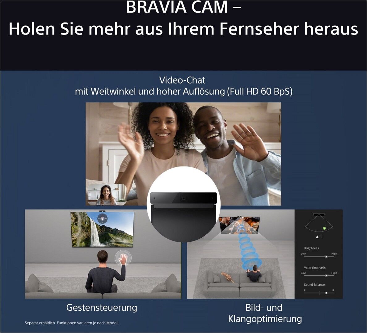 *3 Diese Funktion funktioniert mit kompatiblen Modellen (BRAVIA Theatre Quad / BRAVIA Theatre Bar 9 / BRAVIA Theatre Bar 8 / HT-A9 / HT-A7000 / HT-A5000 / HT-A3000). Die Produktverfügbarkeit hängt von den Regionen und Ländern ab.