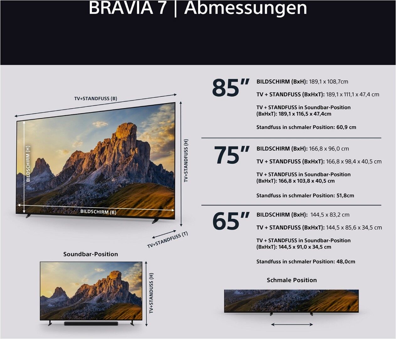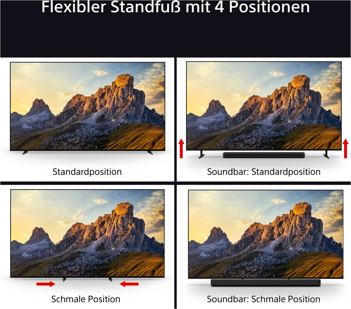 - Sonys One Slate, Seamless Edge TV-Design passt zu jeder Einrichtung, und der 4-Wege-Standfuß bietet ultimative Flexibilität. Die Eco-Fernbedienung ist wiederaufladbar und hintergrundbeleuchtet für gemütliche Filmabende.