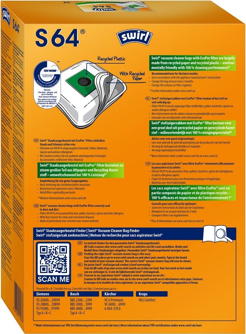 S 64 EcoPor® Staubsaugerbeutel von Swirl®