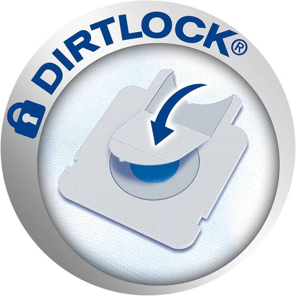 Der Volumenstaubspeicher und die abgerundeten Ecken stellen eine optimale Ausnutzung des Staubraums sicher und ermöglichen somit eine längere Verwendungsdauer des Beutels. Sollte der Beutel doch einmal voll sein, ist die Entsorgung dank des praktischem Dirtlock® Staubverschlusses bequem und sauber.