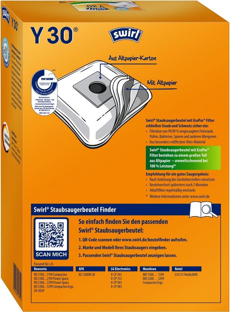 Y 30 EcoPor® Staubsaugerbeutel von Swirl®