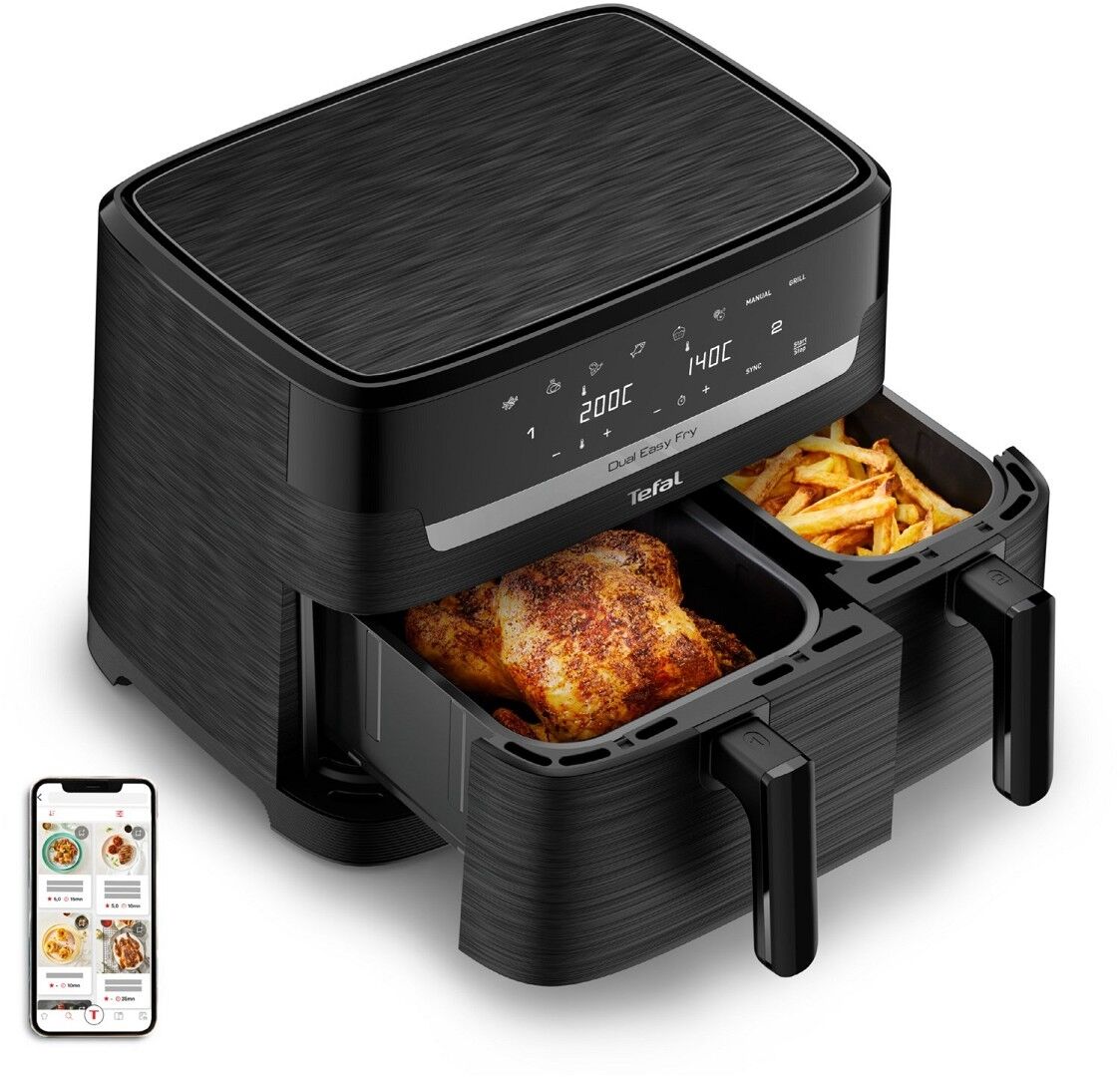Entdecken Sie die 8,3-Liter-Doppelkammer Heißluftfritteuse von Tefal, mit der Sie in einem Durchgang und in weniger als 15 Minuten komplette, hausgemachte Mahlzeiten für die ganze Familie zubereiten können! Dual Easy Fry von Tefal verfügt über zwei unabhängige Schubladen, in denen zwei verschiedene Gerichte gleichzeitig auf den Punkt zubereitet werden können – von köstlich knusprigen Pommes Frites bis hin zu leckerem Fleisch, Fisch, Gemüse und sogar Desserts.