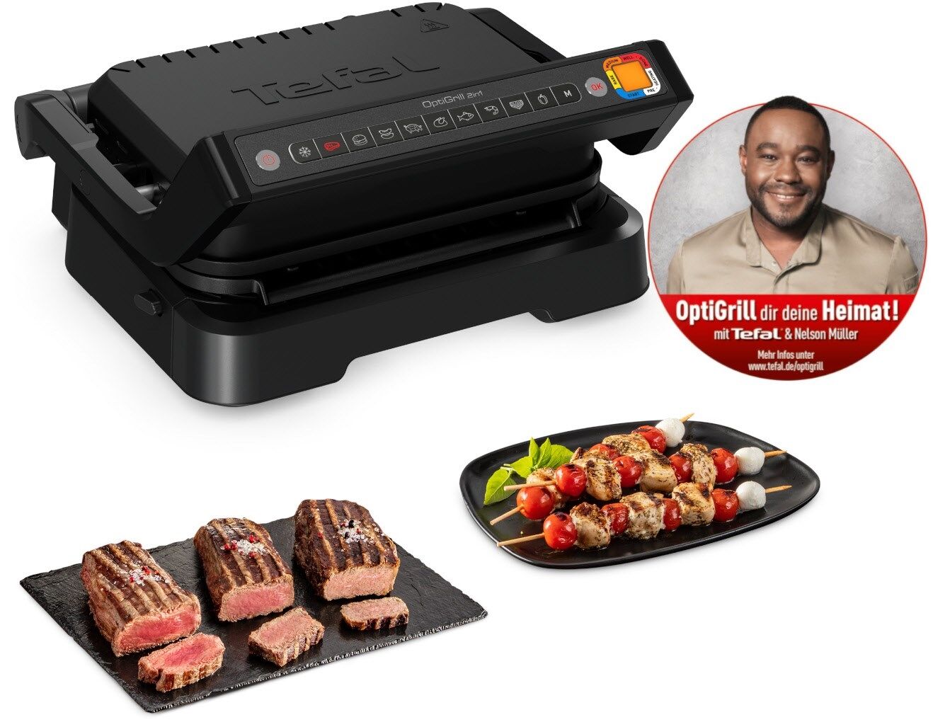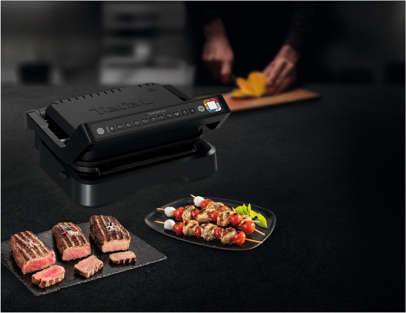 - Intelligenter Grill: 9 voreingestellte Grillprogramme: rotes Fleisch, Burger, Würste, Schwein, Geflügel, Fisch, Meeresfrüchte, Sandwiches und Paprika.